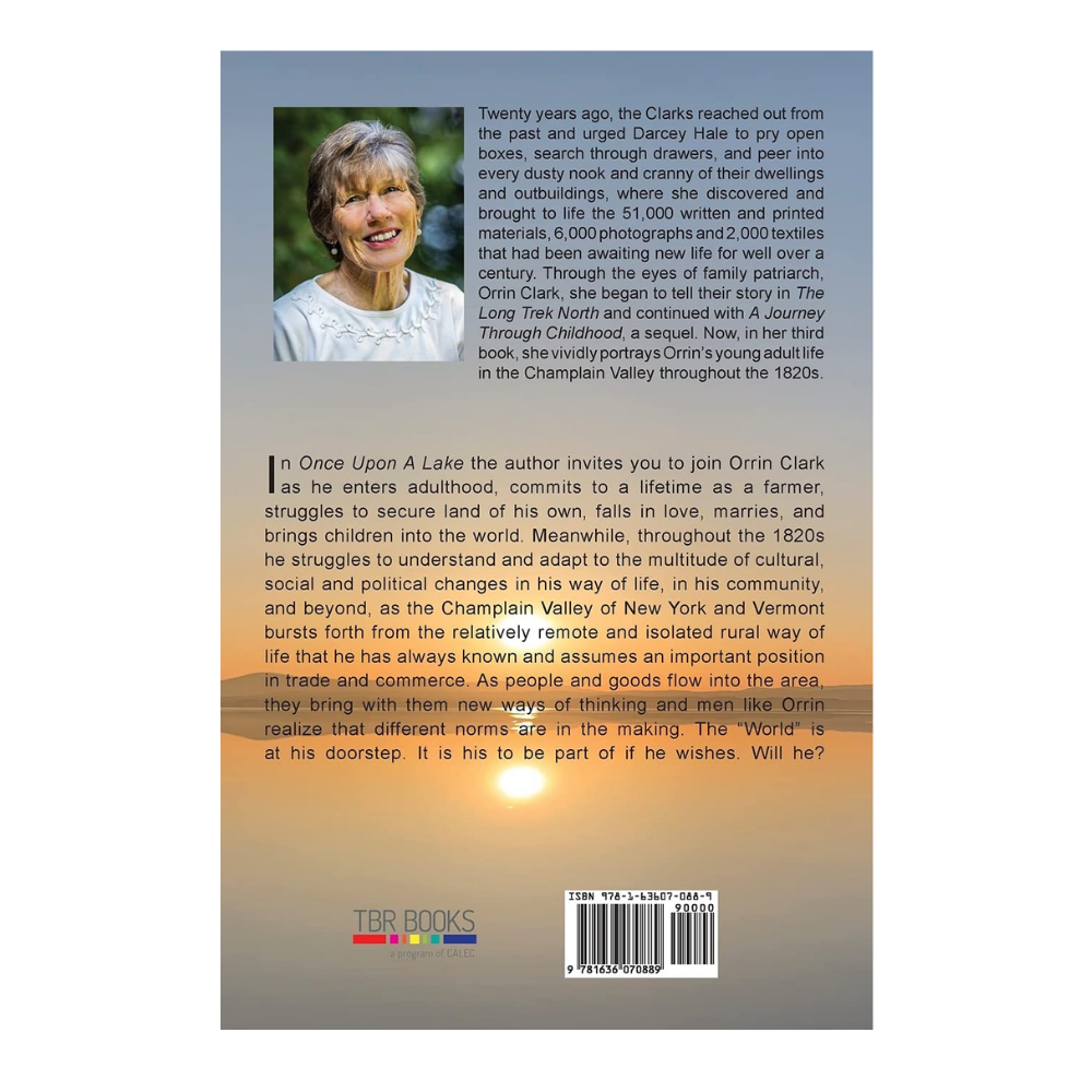 « Dans ses deux premiers ouvrages, Darcey Hale a retracé avec éloquence la vie d’Orrin Clark jusqu’à son vingt-et-unième anniversaire. Dans son troisième livre, Once Upon a Lake, elle poursuit son évocation de la vie à Willsborough et dans la vallée du lac Champlain au début du XIXe siècle, en dépeignant avec talent les épreuves et les tribulations d’Orrin, mais aussi ses joies et ses peines, alors qu’il entame sa vie d’adulte. Ses recherches approfondies s’appuient sur les 52 000 documents du XIXe siècle soigneusement conservés par la famille Clark, restés inconnus du public jusqu’à ce qu’elle les découvre dans divers bâtiments ayant appartenu à la famille et les réunisse. Raconter l’histoire de la vie des Clark constitue une œuvre d’art remarquable. Le lecteur trouvera ce livre captivant : un ouvrage qu’il sera difficile de poser bien longtemps. »